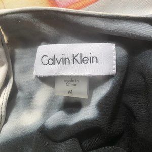 Gently worn, really pretty alone or under a suit. Black, white and gray floral pattern. Stretch material.