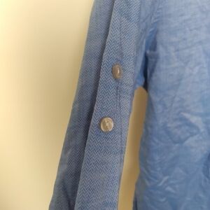 Calvin Klein long sleeve blue 100% cotton button down dress shirt with slightly darker chevron pattern