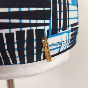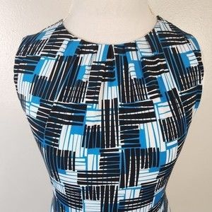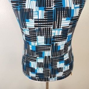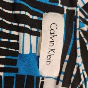 Pretty Silky blue, black and white colorblock sleeveless dress Blouse from Calvin Klein! Has gold logo rag that needs to be resewn on.