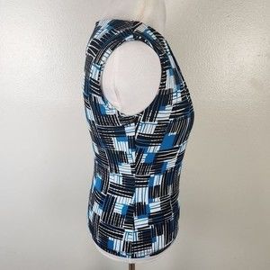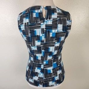 Calvin Klein Blue & Black Colorblock Sleeveless Blouse Size Small Petite