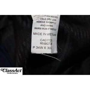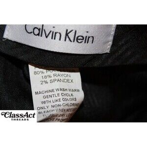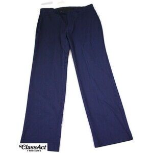 These Calvin Klein dress pants are designed for men in a solid blue color with a flat front and a regular fit. Made from a polyester blend with spandex and rayon, they feature a button closure and a zipper accent. The pants have a size of 34 inches waist and a 30-inch inseam, suitable for occasions like formal events, workwear, parties, and even casual wear due to their stretch fabric. Perfect for a variety of seasons, they offer a classic, preppy style with a touch of modern comfort.