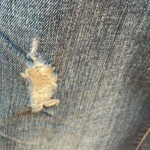 Experience the perfect blend of style and comfort with these Calvin Klein plus size blue jeans. Featuring a modern flare and distressed boot cut design, these jeans offer a relaxed fit that is both trendy and versatile. The deep blue hue and subtle gradient effect add a touch of sophistication to any casual ensemble. The upper distressed spot has a small rip as seen in picture.