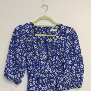 Calvin Klein Blue Floral Faux Wrap Midi Dress Sz 8