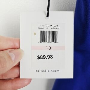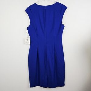 Calvin Klein Blue Horseshoe Neck Ruched Sheath Dress NWT