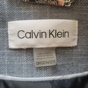 Calvin Klein Blue Linen Texture Open Blazer Jacket Size 12 Petite