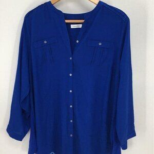 Calvin Klein Blue Long Sleeve Button Up Shirt Women