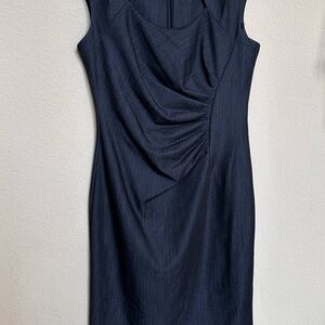 Calvin Klein Blue Ruched Asymmetrical Sheath Dress