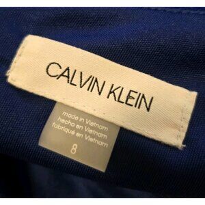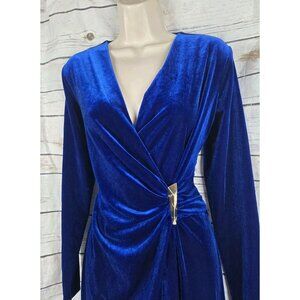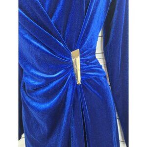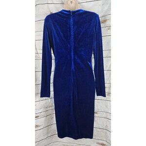 Calvin Klein Blue Velvet Dress 8 Faux Wrap Ruched Classic Holiday Womens
