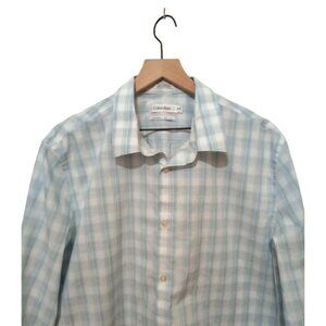 Calvin Klein Blue & White Plaid Cool Tech Casual Button Down Shirt Sz XL