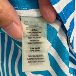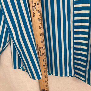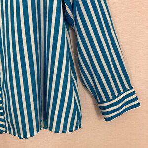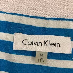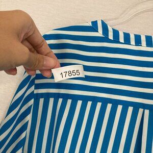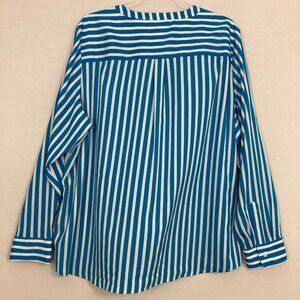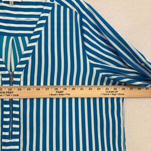 Calvin Klein Blue White Striped Quarter Zip V Neck Popover Blouse 1X Office