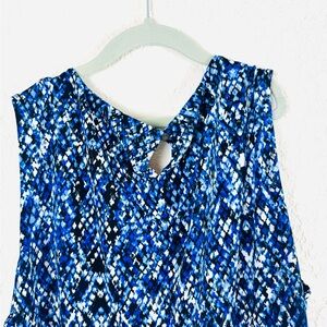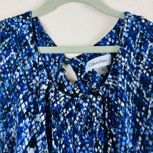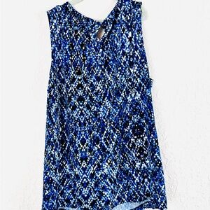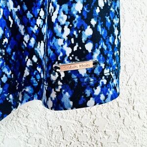 Chic Calvin Klein top with abstract blue and black design sleeveless in excellent condition size Large - extra button on the inner lining of near the tag as shown