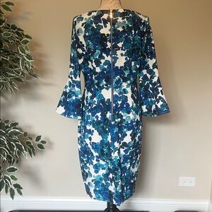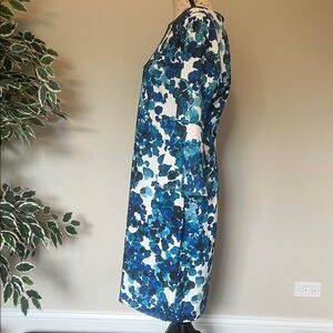 Stylish dress with a vibrant blue and green pattern. Perfect for any occasion.