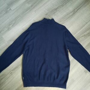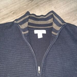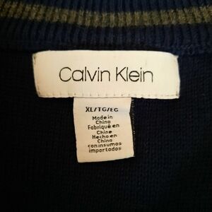 Calvin Klein Sweater. Navy blue and grey. Quarter Zip with collar. Size XL. 100% cotton. Great pre-owned condition.