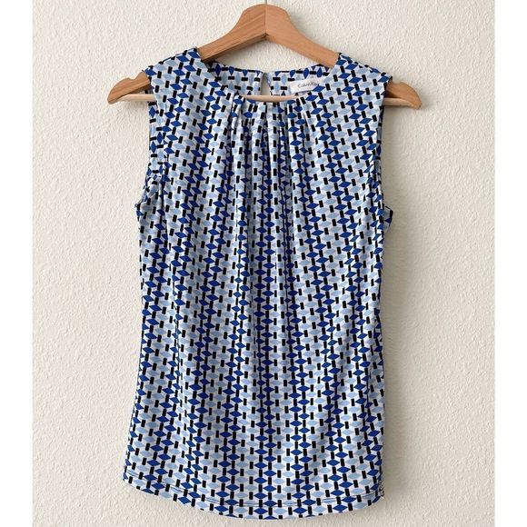 Calvin Klein Blue/White Geometric Sleeveless Blouse size XS