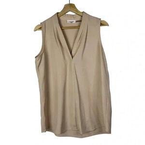Calvin Klein Blush Cream Pleated V-Neck Sleeveless Blouse M