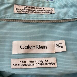 Calvin Klein Body Fit Shirt Blue teal Button Down Long Sleeve Mens Size XL 17-17 1/2. In good condition. 96 % cotton / 4 % lycra spandex. Non iron.