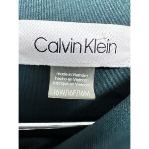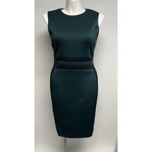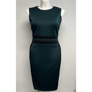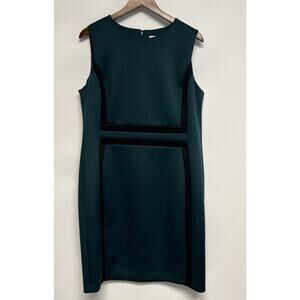 Calvin Klein Bodycon Dress Sz 16W Slimming Colorblock Career Emerald Office