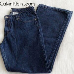 These pair of LIKE NEW CALVIN KLEIN Dark wash jeans Flare legs / boots cut 100% cotton, classic bootcut cut that flatters and slims the figure. High-quality denim with a comfortable fit and a slight flare at the hem, ideal for pairing with boots or casual shoes. Perfect for stylish everyday or casual looks.