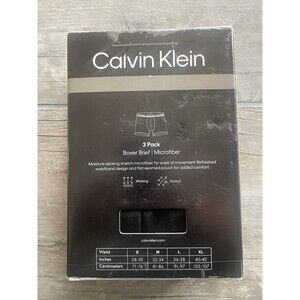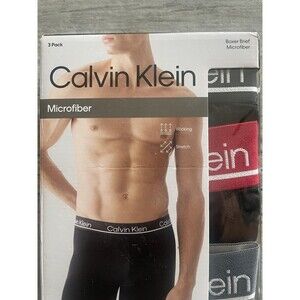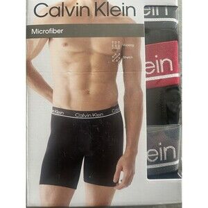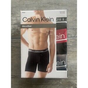 The Calvin Klein Boxer Briefs in size XL feature a solid black color with a 3-colored waistband, made from a polyester/spandex microfiber stretch fabric. These boxer briefs are machine washable and designed for men's underwear, offering a comfortable and stretchy fit. The design includes a pouch and showcases the iconic Calvin Klein logo, making them a stylish and high-quality choice for everyday wear.