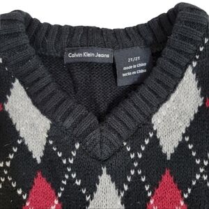 CK Calvin Klein Black sweater Vest with red and Grey argyle pattern. Excellent condition. Size 2. Perfect for the Christmas holiday season.