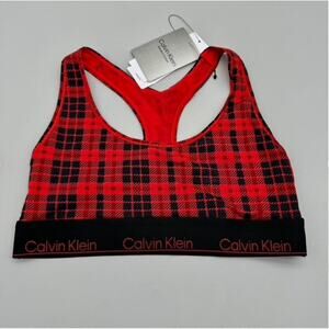 - Calvin Klein Bralette Womens Medium Red Black Tartan Plaid Unlined Modern Cotton