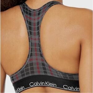 Calvin Klein Bralette Womens Small Black Red Tartan Plaid Unlined Modern Cotton