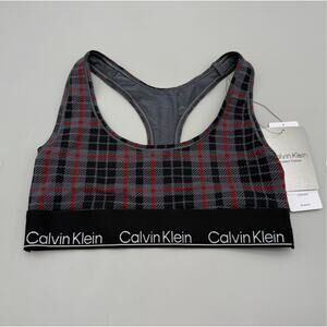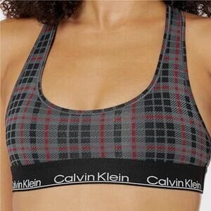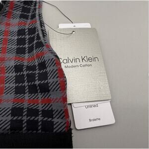 Calvin Klein Bralette Womens XS Black Red Tartan Plaid Unlined Modern Cotton