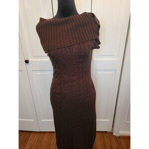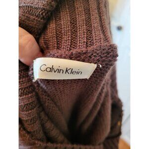 Calvin Klein Brown Cable Knit Sweater Dress Cowl Neck S Fall Brunch Church y2k