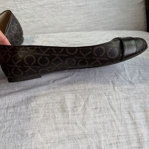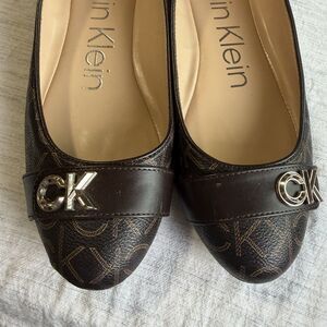 Calvin Klein Brown Lisa Ballet Flats Size 9 Monogram CK Print Faux Leather