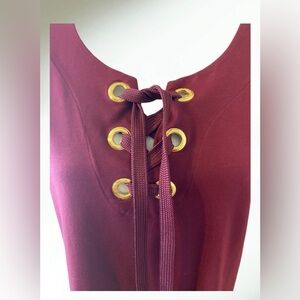 Calvin Klein Burgundy Dress Size Large Shoelace style front