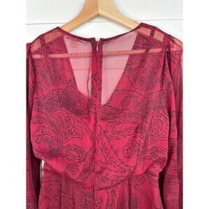 Tags: Calvin, Klein, Dress, Burgundy, Midi, Paisley, Ruffle, Sheer, Wrap, Womens