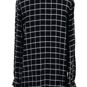 Calvin Klein black and white long checkered button-up shirt with long sleeves. Hardly worn. Soft material- 100% viscose