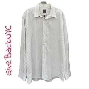 Calvin Klein Button Down Dress Shirt White and Gray Stripes Size 17