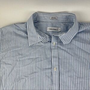 Calvin Klein Button Down Shirt Mens XXL Blue Striped Long Sleeve