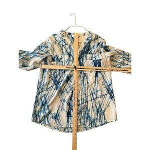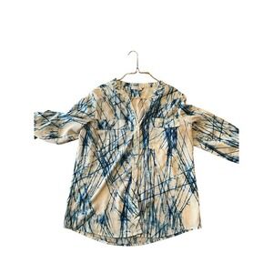 Calvin Klein Button Down Shirt Women's SZ L Blue/White Band Collar Split Neck