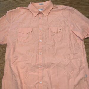 Calvin Klein Button Down Short Sleeve Shirt Orange Size XL Logo Casual Dress