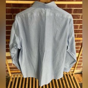 Calvin Klein blue and white patterned slim fit performance non-iron button up, size 17 32/33. Comfortable breathable material, extra buttons, and like new condition.