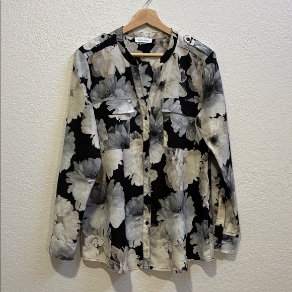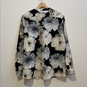 Gently used in excellent condition. Flower pattern. There is no size tag but it’s likely a large. Able to fold sleeves up as an option.