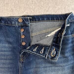 Calvin Klein Button Up Jean Shorts WMNS 30 Medium Wash Blue Ripped Raw Mid Rise