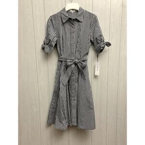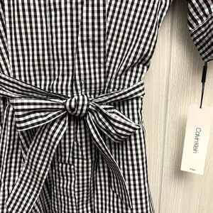 Calvin Klein Button Up Shirt Dress Gingham Print Black White Size 2 NWT
