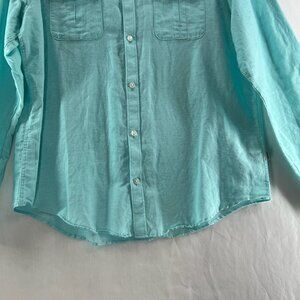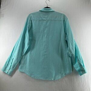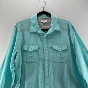 Calvin Klein Button Up Shirt Mens L Long Sleeve Roll Tab Linen Cotton Aqua Blue