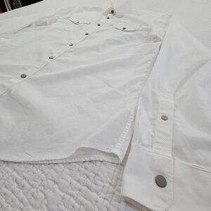 Calvin Klein Button Up Shirt Men's M White Slim Fit Snaps Long Sleeve EUC LN