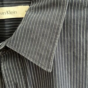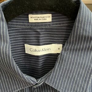 Very nice teen boys/men’s Calvin Klein button down shirt. Blue with white thin stripes.