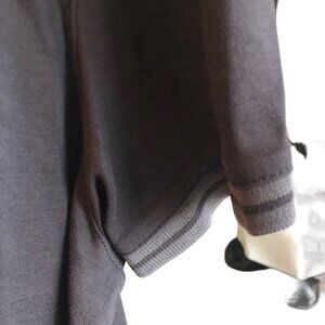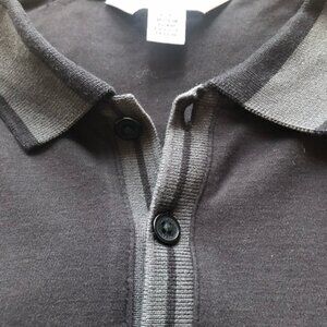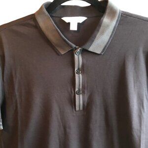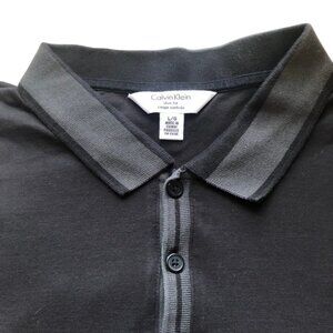 Calvin Klein Button-front Short Sleeve Shirt with decorative striped collar, button-front and cuffs in grey/black. 100% cotton with stretch fr comfort. Size L, slim fit, worn once, excellent condition