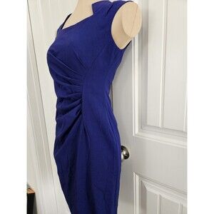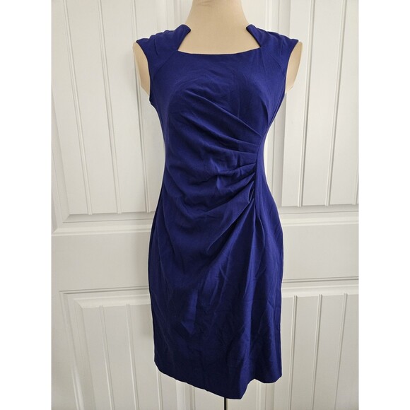 Calvin Klein Byzantine Blue Cut-out Neck Side Ruched Sheath Dress Sz 2 P