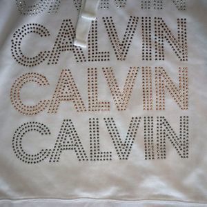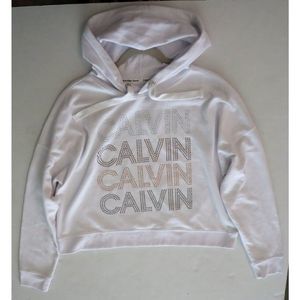Calvin Klein CJRT1994 Women Sz M White Studded Logo Graphic Hoodie Sweatshirt $7