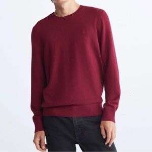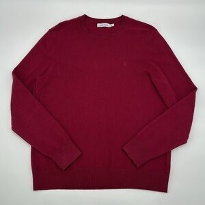 Calvin Klein CK Logo Wool blend Crewneck Classic Holiday Knit Sweater Wine sze M