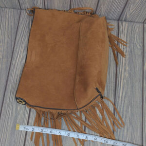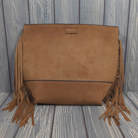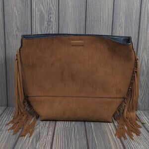 Calvin Klein CK Suede Fringe Crossbody Boho Purse Tote Bag Brown Wallet