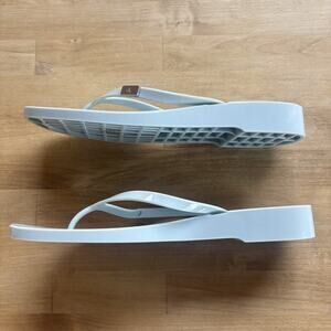The Calvin Klein CK Women Sandals in light Gray Blue Flip Flop Flats Size 9 are a stylish and classic choice for women looking for comfortable sandals. Featuring a slip-on closure and low heel height, these sandals are designed for all-day wear with a lightweight and breathable synthetic upper material.