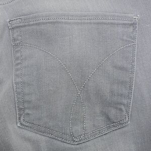 These stylish light wash gray skinny jeans from Calvin Klein offer a comfortable stretch fit, perfect for any casual occasion. Size 26 with a 26x29 measurement, they add a chic touch to any wardrobe.